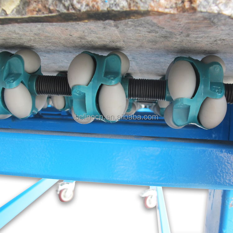 臺面是由多個小萬向輪組成的輸送帶,轉動方向靈活,是石材加工過程中物料傳送的理想工具。
